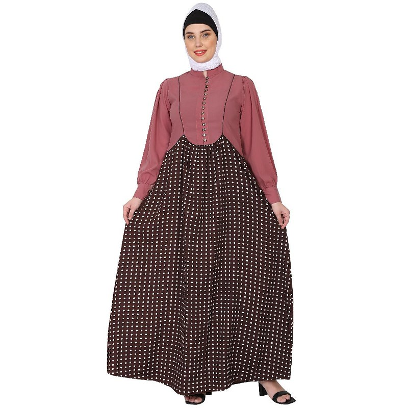 Pre Order Pink-Wine Crepe Muslimah Maxi Dress with Hijab (XS to 3XL)