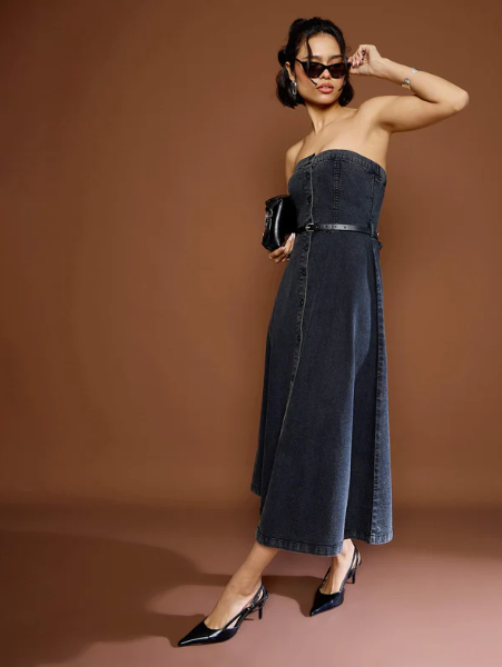 Features: Midi Length, Comfort Fit, Button Closure, Straight Hemline