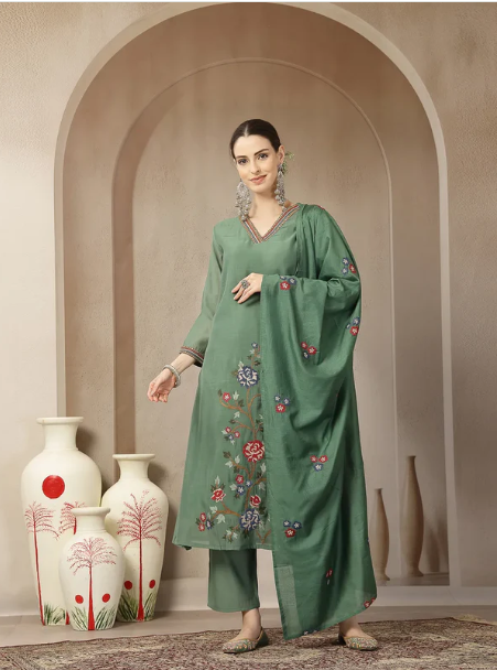 Features: 1 pocket Thread Work, Floral Embroidered, Calf Length, Slip-On Closure