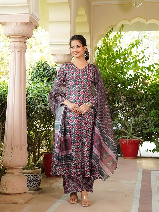 Pre Order Plus Size Maroon Rayon Kurti With Pants & Shawl (M to 4XL)