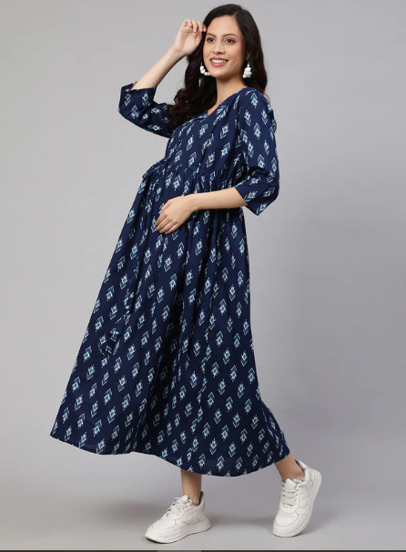 Pre Order Blue Cotton Maternity Dress (M to 2XL)