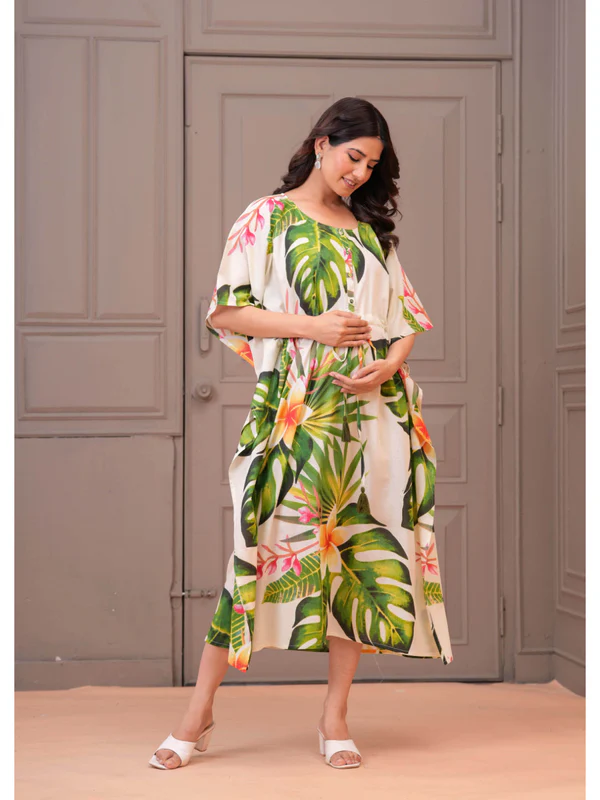 Features: Kaftan Shape, Maxi Length, Flared Hemline