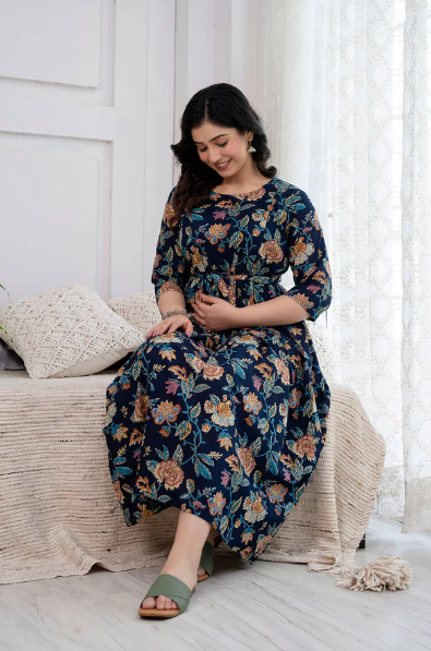 Pre Order Navy Blue Cotton Maternity Dress (M to 2XL)