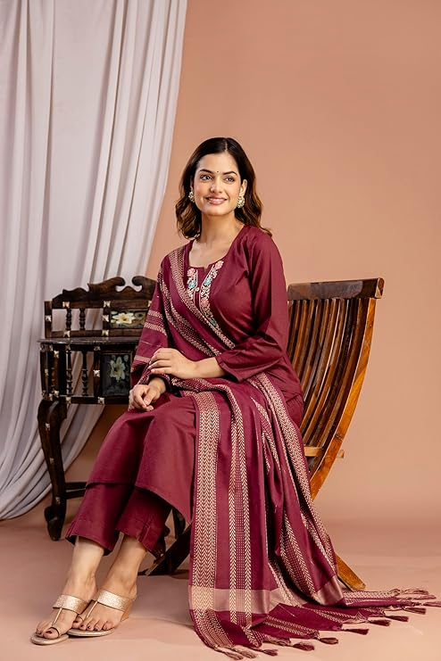 Pre Order Plus Size Cotton Kurti With Pants & Shawl (S to 3XL)